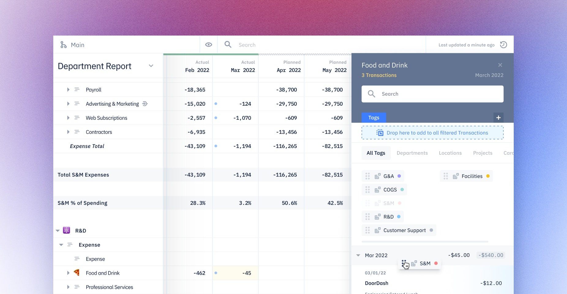 Using software to departmentalize expenses helps you avoid lumping all expenses together. Categorizing your expenses by departments can give you a granular view of your startup outflows. It can help you benchmark your startup against industry peers, set department budgets, and make more informed financial decisions.