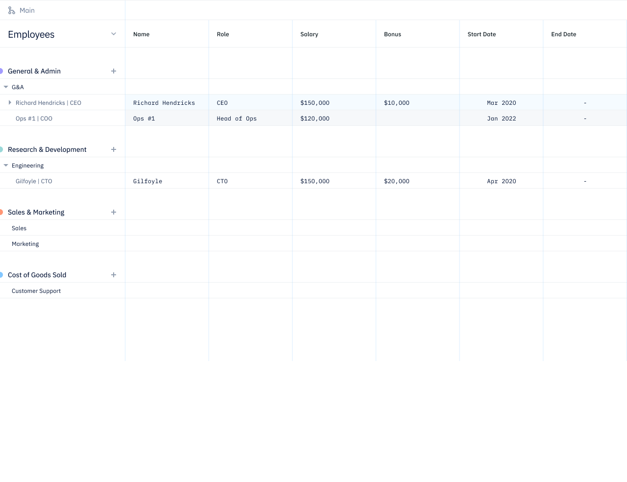 For the payroll synced employees, you can edit their role, salary, bonus, start date and end date. You can not edit their name. If you need to edit their name, please check with your payroll provider.