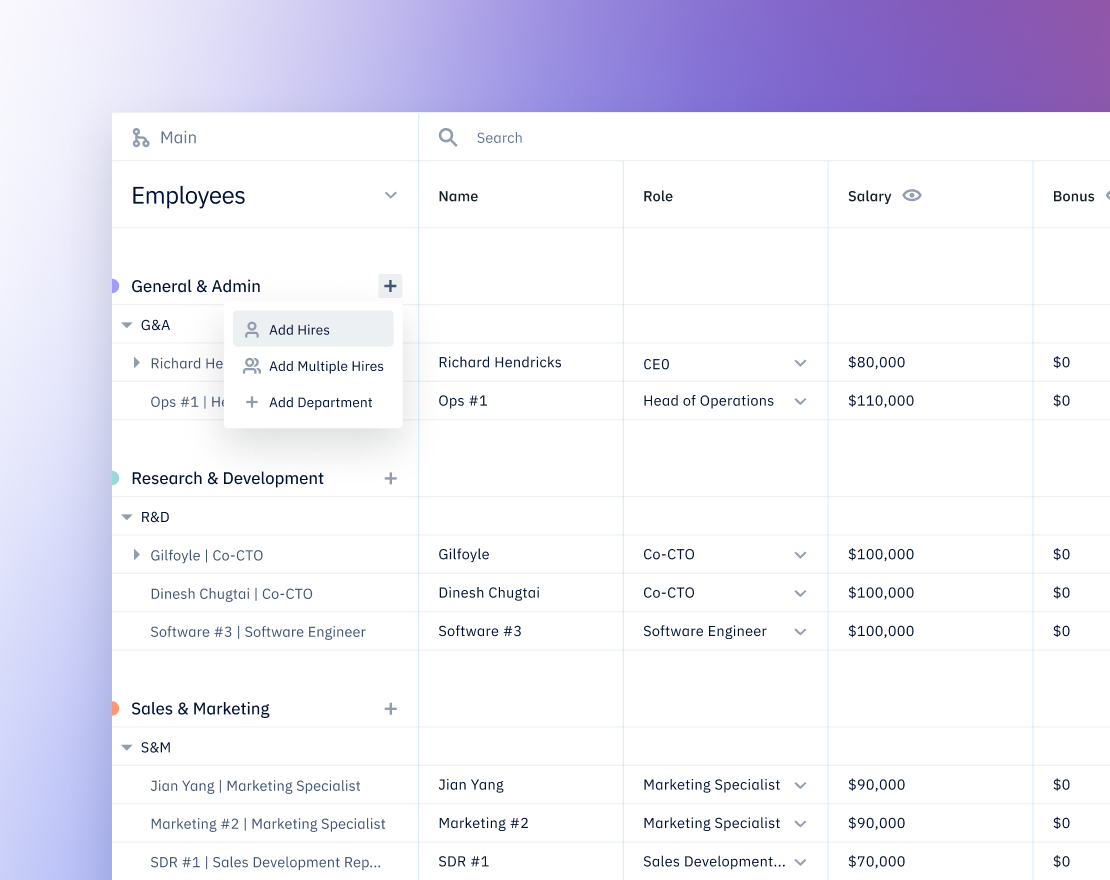 Variables like the cost to hire people, revenue generated from customers, and money spent on marketing change constantly. It sounds simple... until you’re manually entering that info and babysitting formulas.